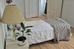 Chaque chambre est complètement meublée : lit, table de chevet, commode et fauteuil