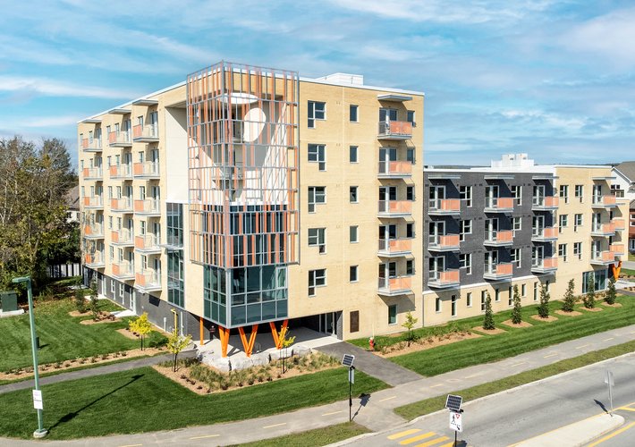 The Logements de l’Outaouais residence, located at 330 de l'Europe, is a newly built property completed in 2024. It enjoys a prime location close to Les Promenades Gatineau, as well as various essential services such as grocery stores and pharmacies. The senior living residence offers one- and two-bedroom apartments, with the possibility of rental subsidies subject to eligibility.