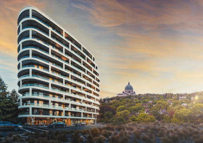 Le projet propose 113 appartements raffinés, du studio, 3 ½, 4 ½ et 5 ½, toutes équipées des cinq électroménagers essentiels, de grandes fenêtres et de finitions haut de gamme. Sa structure en béton assure silence et tranquillité pour un quotidien serein.